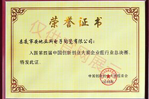 入圍第四屆中國(guó)創(chuàng)新創(chuàng)業(yè)大賽企業(yè)組行業(yè)總決賽